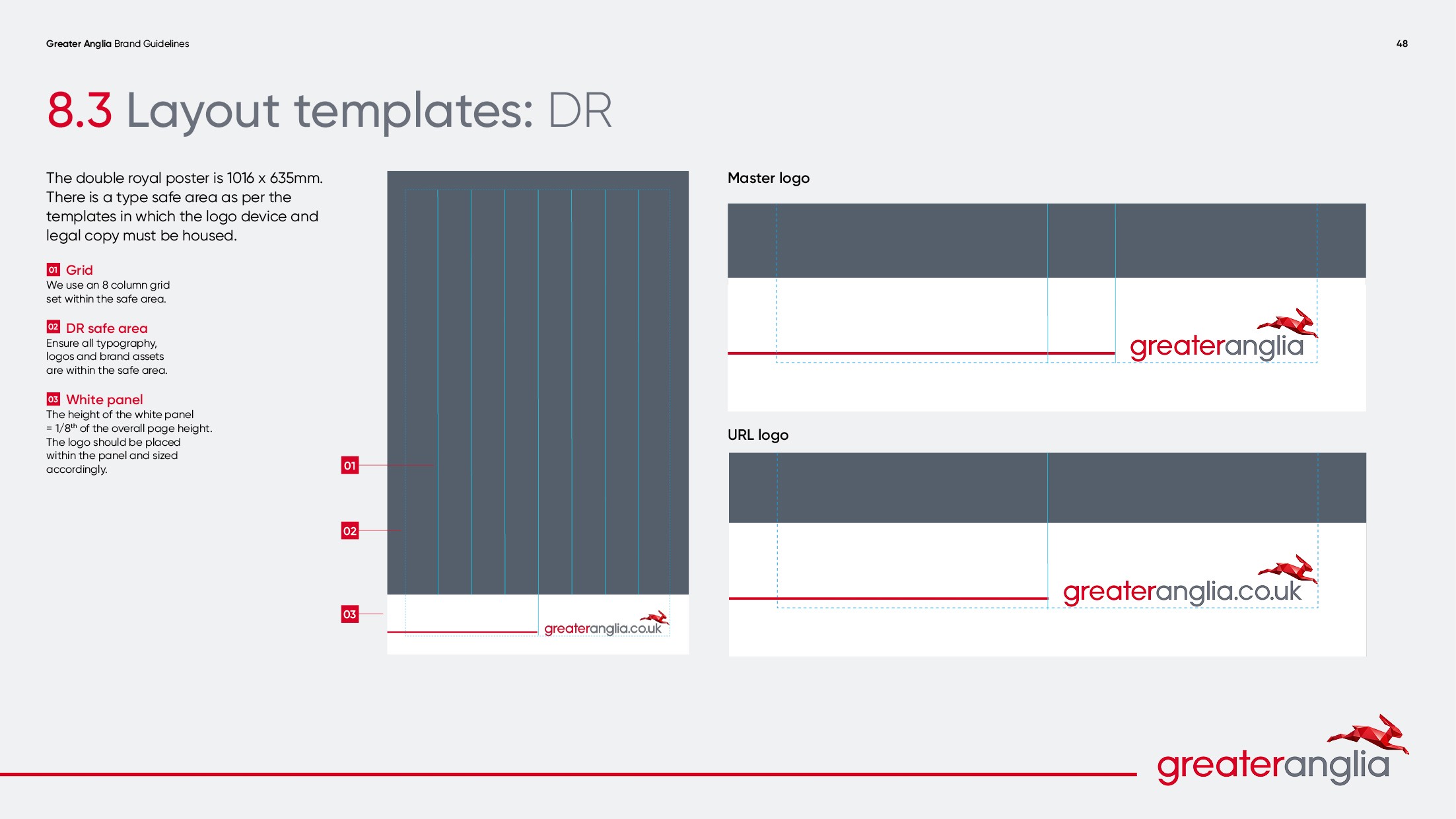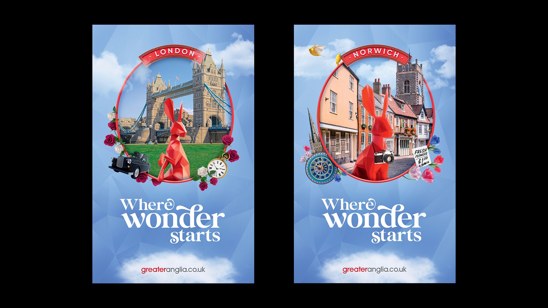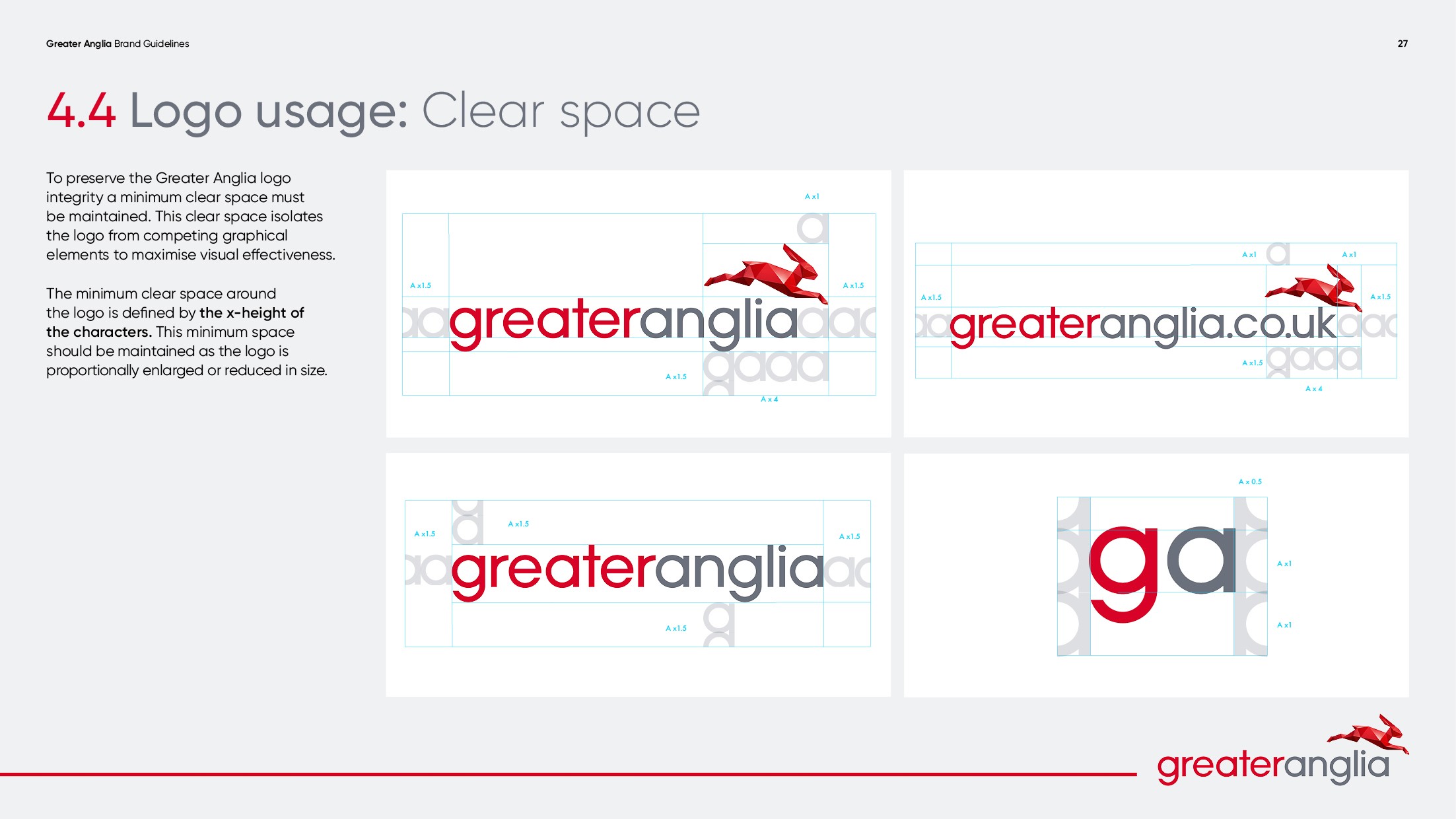 Throughout my time working on Greater Anglia I have refreshed the master brand guidelines, moving them on to allow for greater creative flexibility without losing consistency across the brand’s building blocks. Following the success of this project, I was briefed to develop a set of internal guidelines for the team at Greater Anglia. They needed something fresh and exciting to cut through internally, as well as new assets to reflect their new identity. We developed a suite of new brand Hare assets, which not only work flexibly for the internal teams, but allows Greater Anglia to be mindful of cost.