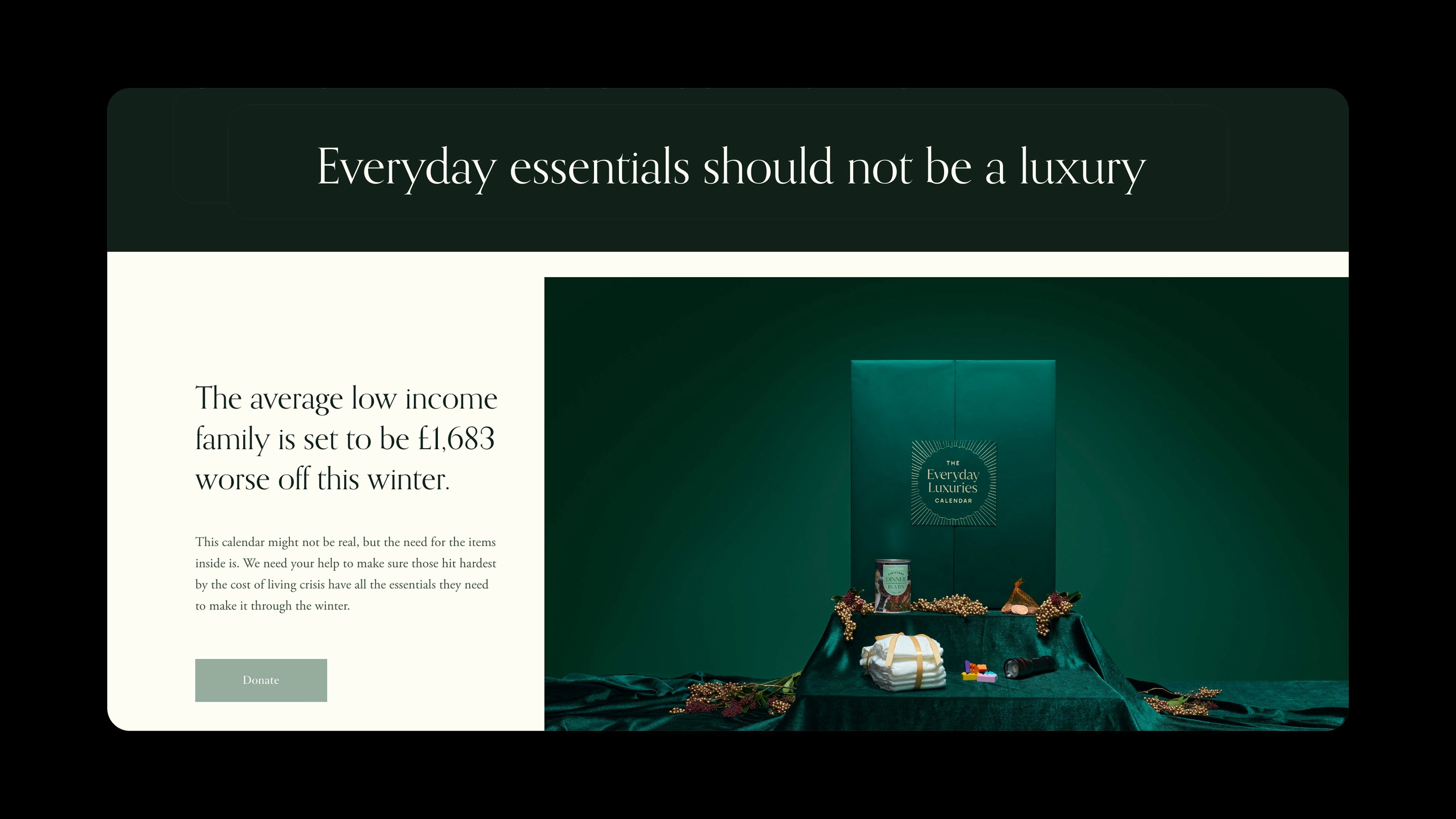 So we teamed up with The Hackney Children & Baby Bank to help those who need it most, and created a luxury advent calendar with a twist. Unlike other luxury calendars on the market, this one is packed full of the year''s actual must-haves. Because everyday essentials should not be considered a luxury.